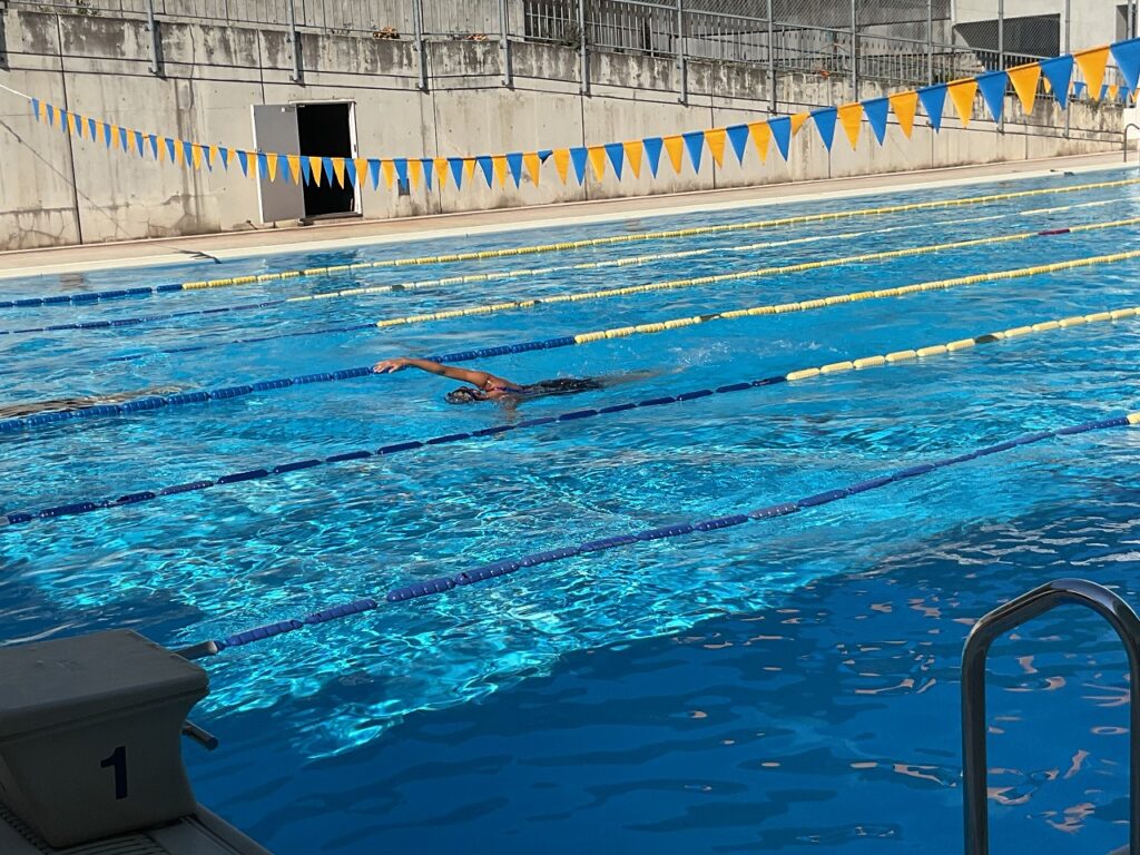 当日は、生徒たちが早めに登校し、会場準備や進行の手伝いを率先して行っていました。自分の実力を試せるこの日を楽しみにしていたようで、競技中は全員が真剣に、そして心から楽しみながら泳ぐ姿が見られました。互いに応援し合い、記録に挑戦する姿から、これまでの練習の積み重ねがしっかりと感じられました。年齢や学校の垣根を越えて、水泳に全力で向き合う姿はとても清々しく、泳ぐことの楽しさを改めて感じられる一日となりました。年齢や学校の垣根を越えて、水泳に全力で向き合う姿は見ているこちらも元気をもらえるもので、泳ぐことの楽しさを改めて感じられる一日となりました。