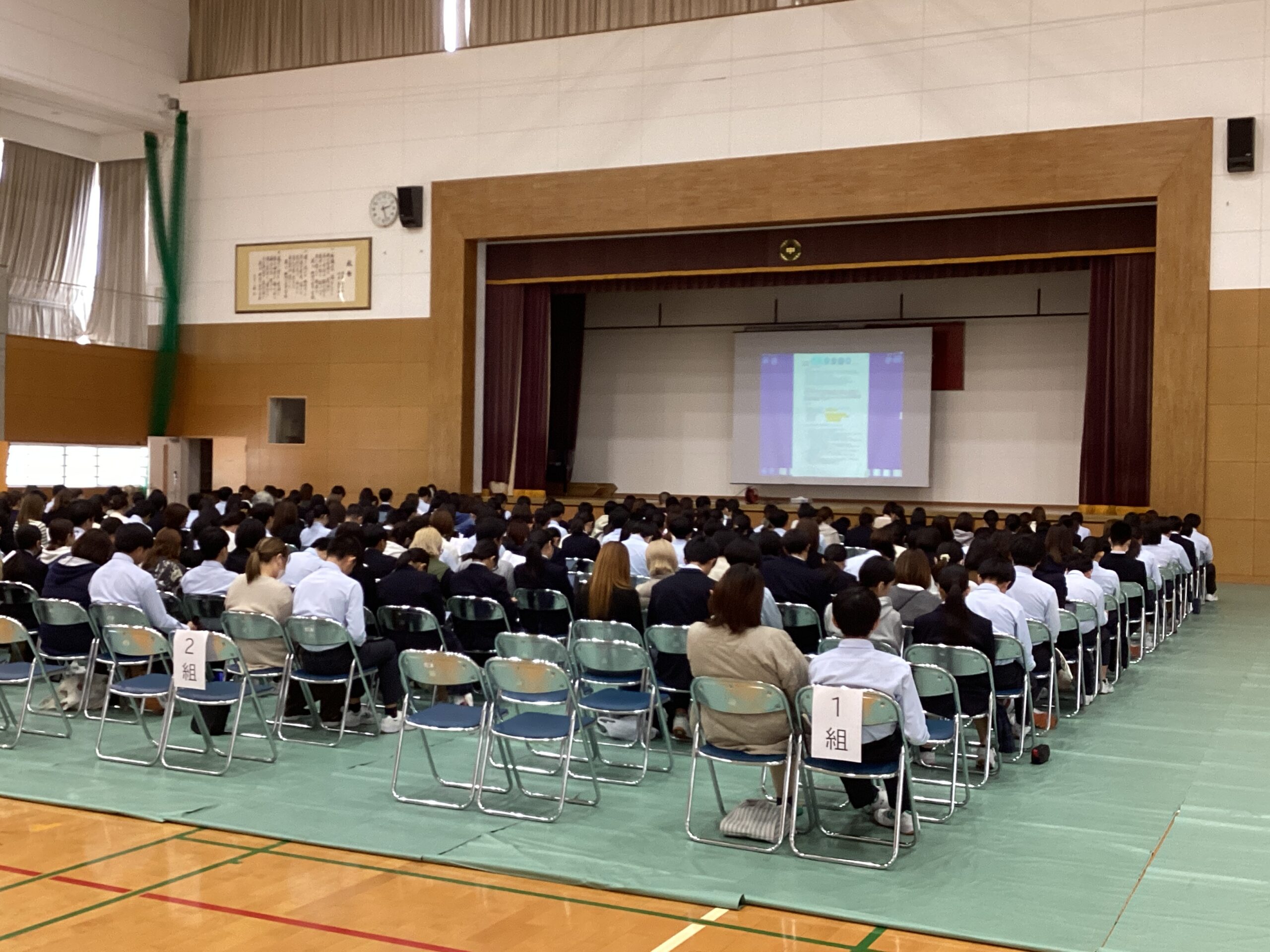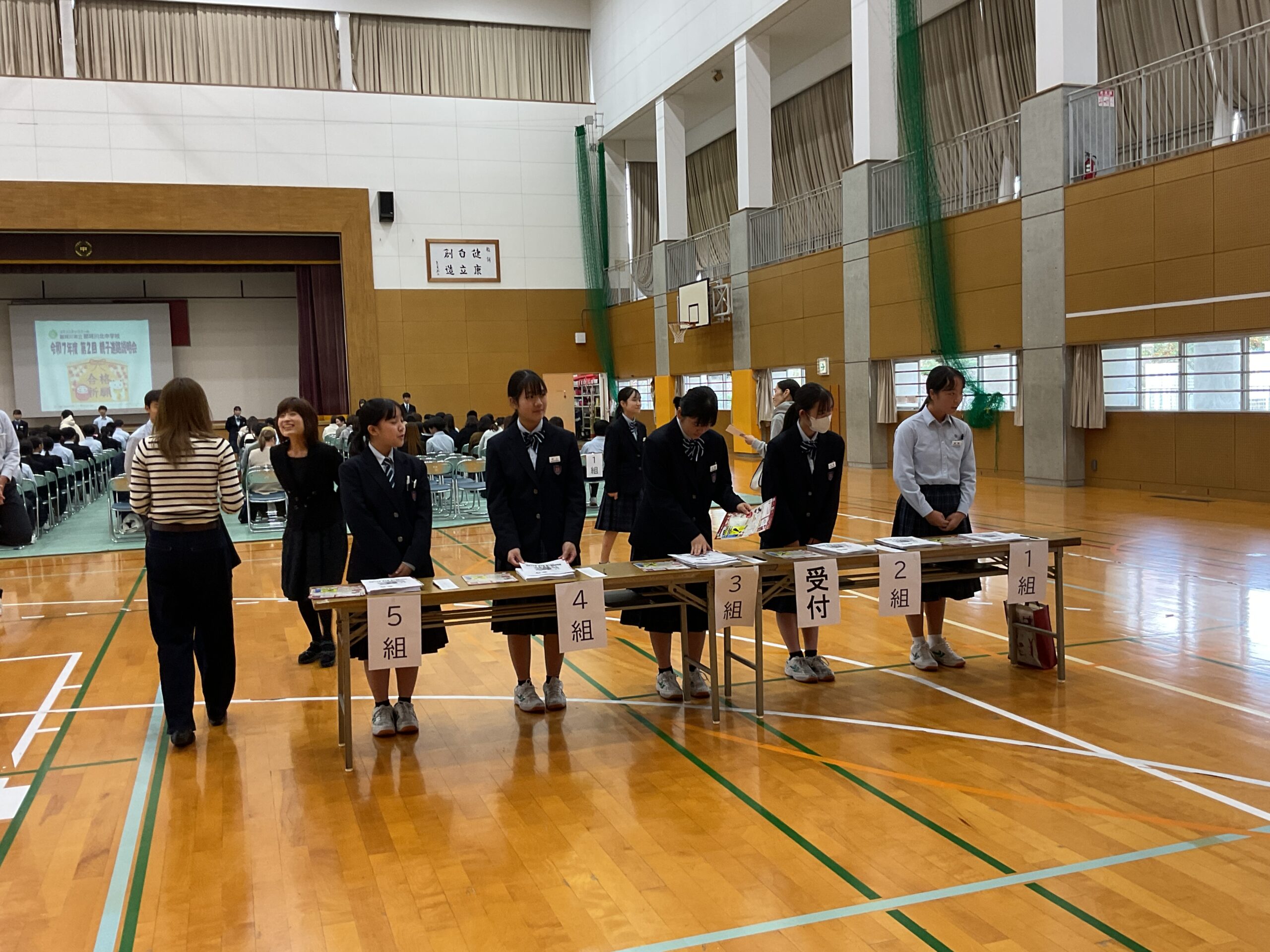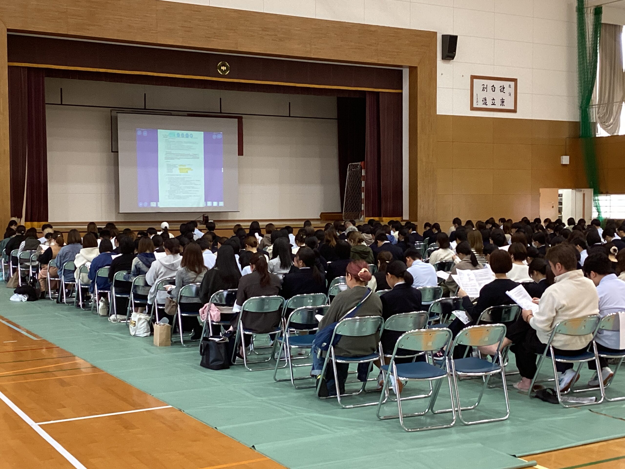 11月4日(火)に3年生とその保護者を対象に親子進路説明会を実施しました。参加していただいた保護者の皆様、ご多忙の中、参加いただきありがとうございました。今回は、今後の進路選択の流れやWEBシステムを用いた出願手続きなど、より細かい内容について説明しました。生徒はクロムブックに配信された資料を参考にしながら、今後の流れの詳細を確認しました。これから、生徒は学級担任と個人面談等を行いながら進路選択について話し合い、11月末から始まる三者面談において私立高校の出願校や公立高校の特色化選抜・公立推薦を希望するかどうかなど、詳細を決定していきます。つきましては、ご家庭でも機会があるたびにお子さまの進路について、話し合う時間を設けていただきたいと思います。また、今週は進路選択において大変重要となる後期中間考査も始まります。生徒の皆さんには、これまで授業や家庭学習を頑張ってきた成果を発揮してほしいと思います。