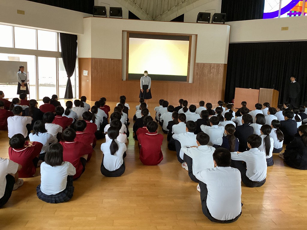 当日は、講演会があったり、クラス代表が学年の前で発表したりします。