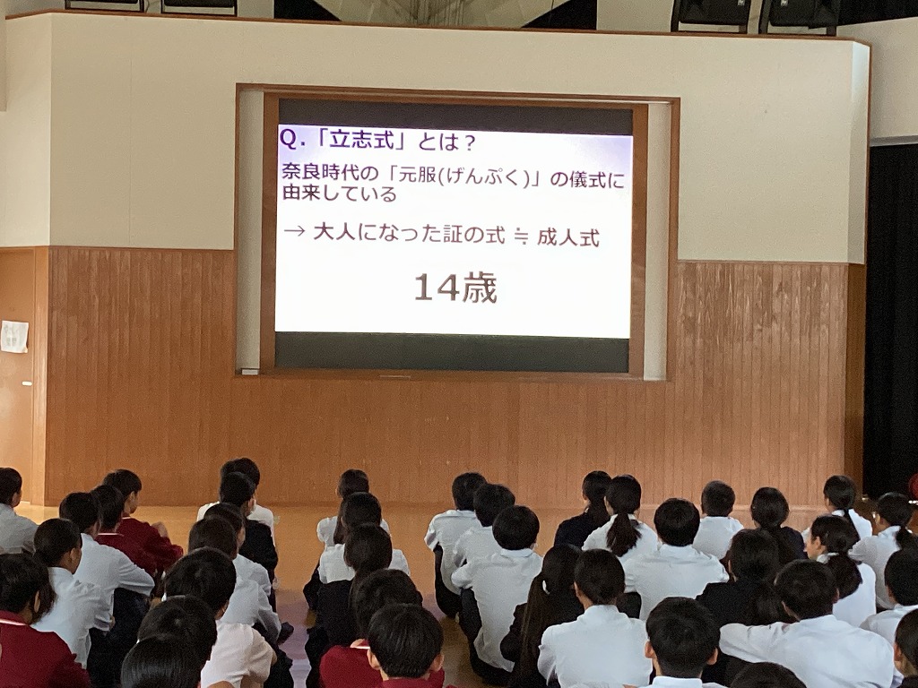 立志式とは、奈良時代から始まったといわれる元服にちなんで(数え年の)15歳を祝う行事です。聞きなれない方も多いでしょうが、活発に行われている都道府県も多いみたいです。