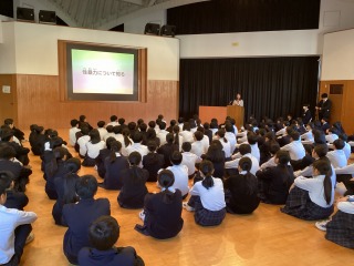 福岡女学院大学・相良誠司先生より、生徒が様々な場面で活躍する姿がみられ、一人ひとりの良さが諸活動の中でしっかりと発揮されていることについて評価をいただきました。