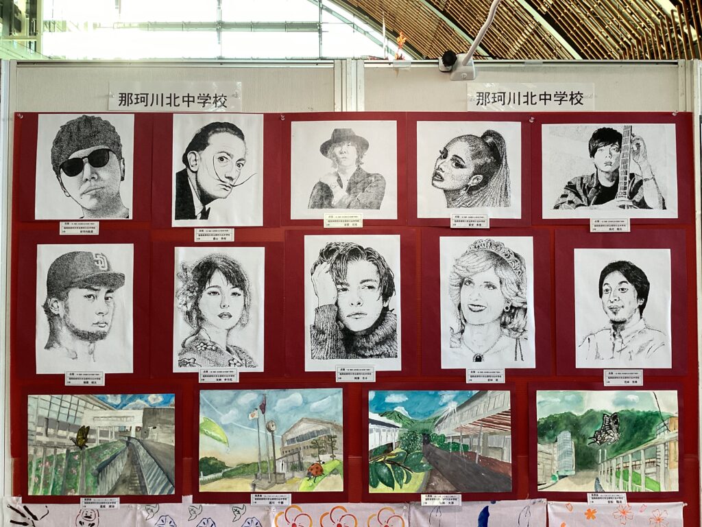 筑紫区中学校美術展が九州国立博物館で開催されています。12月14日(日) 〜17:00(入館は16時30まで)が最終日となっています。 作品の中でも、特に目立っていたのが3年生の点描です。 他県の高校生が修学旅行で訪れていましたが「ヒカキンだ!!」「お〜!ひろゆきそっくり!!」、また海外からの旅行者は「Oh wow ! That’s Ariana Grande!!」「Dali is looking at us!」などの感嘆の声が上がっていました。 是非、ご高覧いただきますようご案内申し上げます。