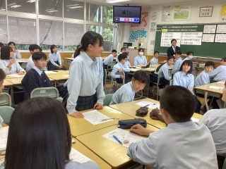 当日は、1年生は「那珂川市子どもの権利条例」、2年生は「識字学級」と「江戸時代の身分制度」、3年生は「結婚差別」の授業を公開しました。どれも難しい内容で、外部から多数の方々が参観に来られている中、生徒たちは真剣なまなざしで授業にのぞみ、活発な意見交換も見られました。放課後には授業整理会が実施され、参観された方々から、多くのお褒めの言葉や、授業をよりよくしていくためのいろいろな意見もいただきました。