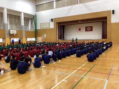 本日をもって、後期前半が終了しました。表彰式の後、生徒会長からの話、冬休みの過ごし方についての話がありました。