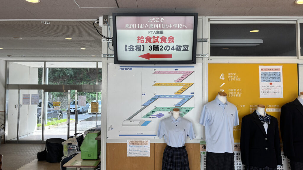 今年度もPTA学年委員さんが給食試食会を開催してくださいました。2年生が高校1日体験で空いている教室を使い、15名の参加で行われました。
