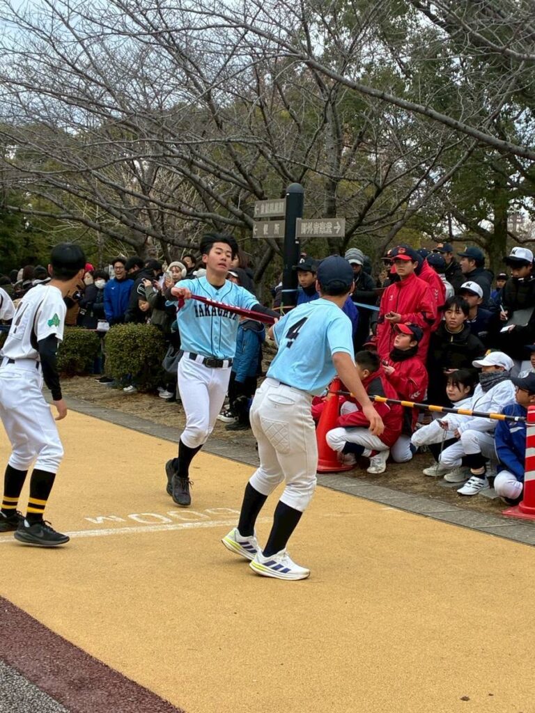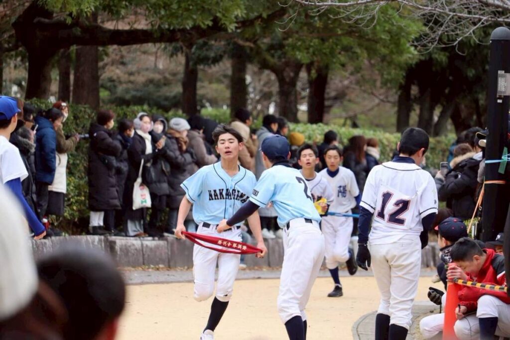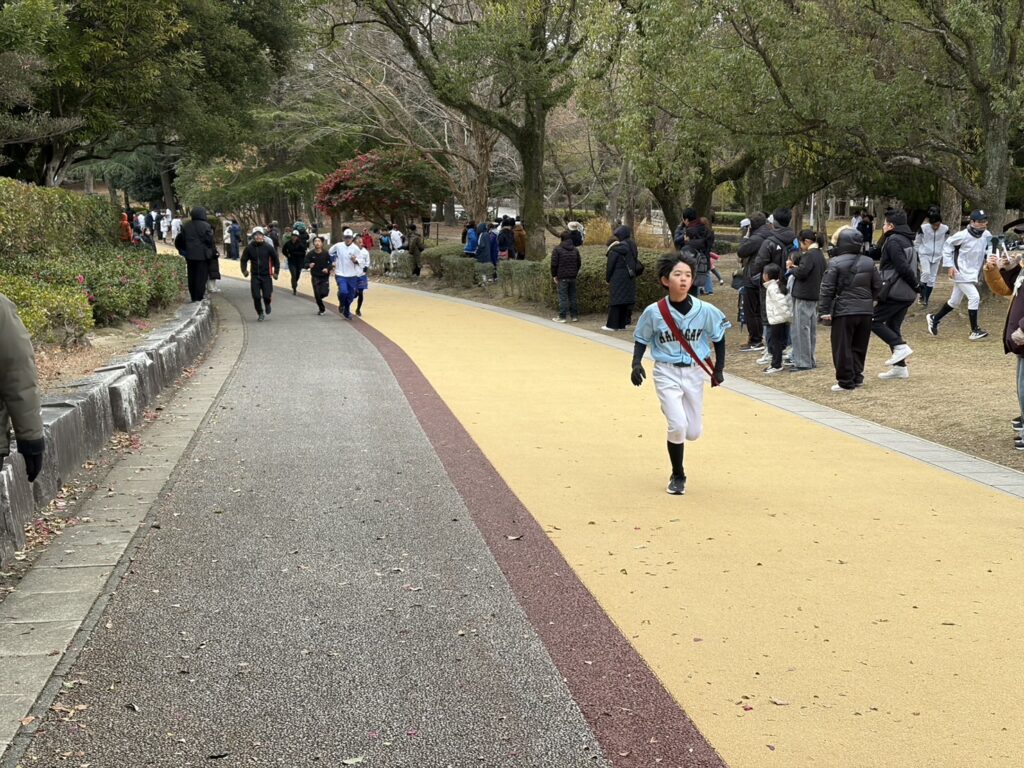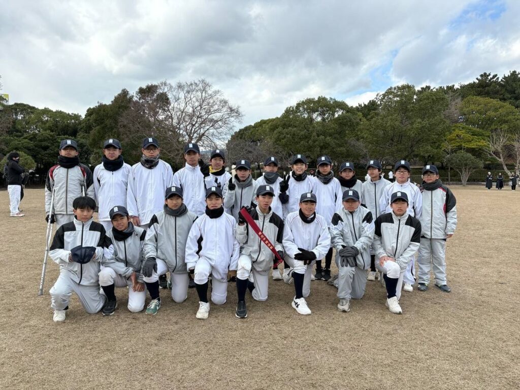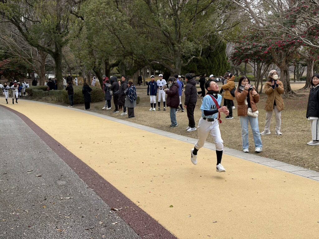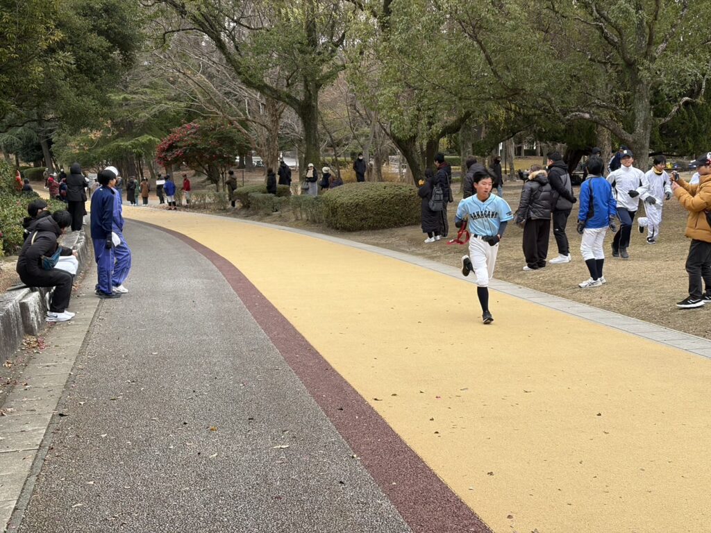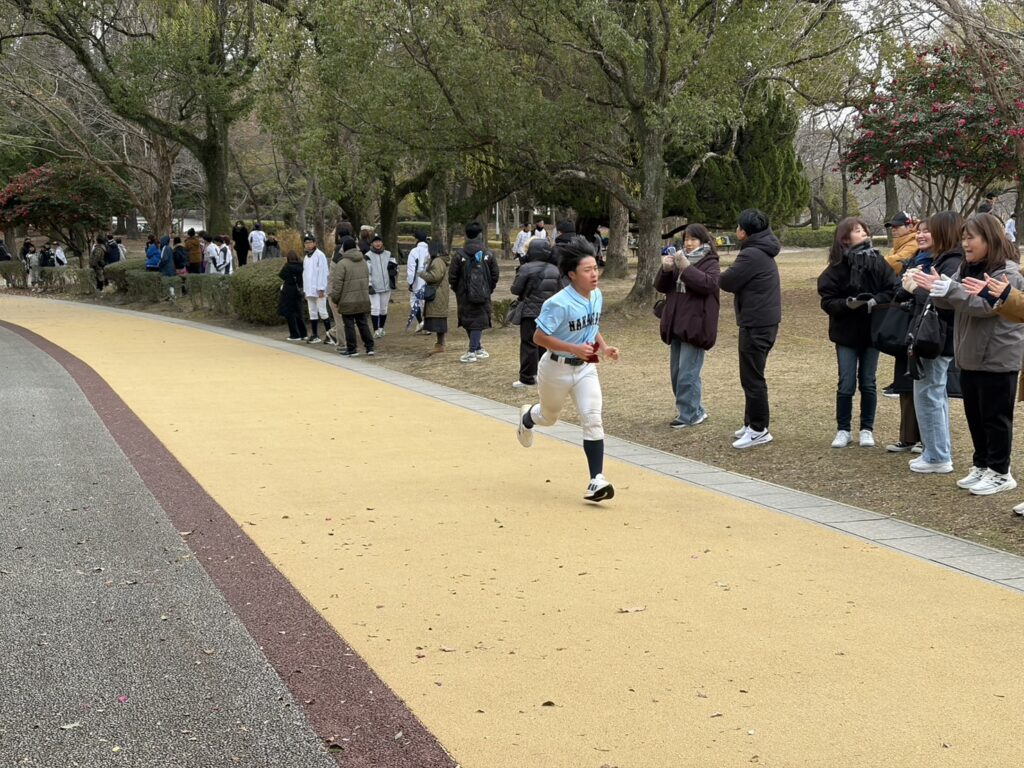 まず、冬休み中に小学生部活動体験を行いました。昨年の体験も含めてのべ20名の小学生が参加し、捕球体勢やバッティング、ベースランニングなどを行いました。参加してくれた小学生の感想には、「中学生がやさしく教えてくれてよかった」「本格的に野球ができて楽しかった」といった内容がありました。来年の入学、野球部入部を楽しみにしています。 次に、1月11日(日)に、筑紫区の野球部やクラブチーム、計24チームによる、第26回筑紫区中学校野球部駅伝・マラソン大会が春日公園で行われました。この大会の目的は、オフシーズンに目標をもって体力・持久力の向上とチームワークの強化できるように、この時期に開催されています。大会には、マラソンの部と駅伝の部に分かれ、参加しました。残念ながら、個人、チームとして入賞等の結果は残せませんでしたが、たくさんの声援の中でこれまでの練習の成果を発揮できる環境に感謝をしながら、大会に臨むことができました。ベストタイムを出すことができた部員もいましたが、そうでない部員もいました。夏の中体連では、ここぞという場面で自分のもつ力を100%発揮できるかどうかが問われます。これから夏に向けて、冬のトレーニングや練習、試合を通して勝負強さを身につけていきたいと思います。今後も応援よろしくお願いします。