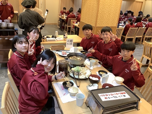 修学旅行2日目を迎えた2年生は、京都市内での「班別自主活動」を無事に終え、夕刻に宿泊先へ戻りました。比較的暖かい晴天にも恵まれ、京都の歴史や文化に触れることができた有意義な1日となりました。帰着後は、この日の自主活動で協力し合った班の仲間とともに夕食を堪能しました。