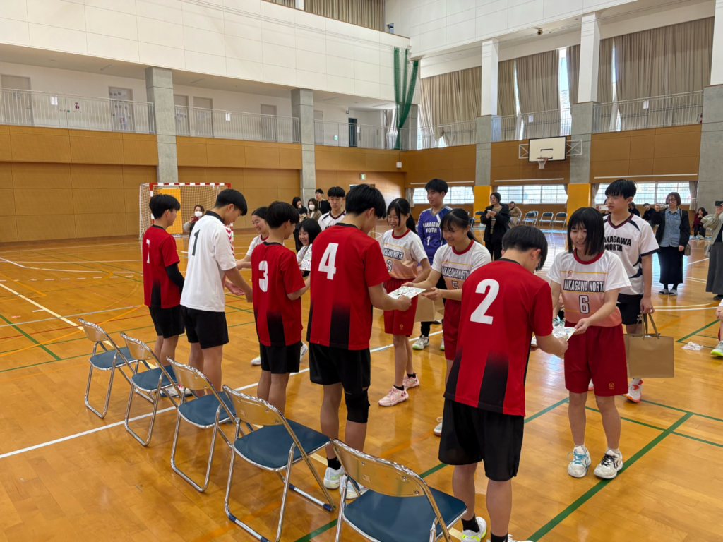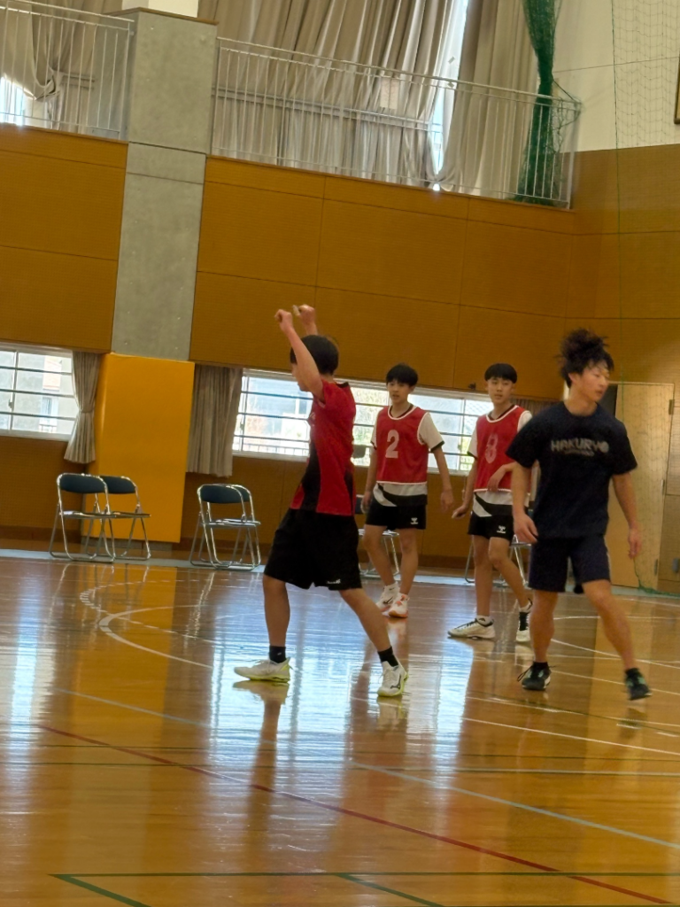 3年生は、夏まで共に戦った仲間と再びコートに立ち、OBチームに挑みました。白熱した接戦となり、女子部員の明るい声援も加わって、会場は大いに盛り上がりました。顧問としては、久しぶりに卒業生がハンドボールに触れ、楽しそうに熱くプレーする姿を見られて、とても嬉しかったです。 それぞれ進む道は違いますが、 これまでにハンドボールで関わった人たちのつながりを大事にしながら過ごしていってほしいです。