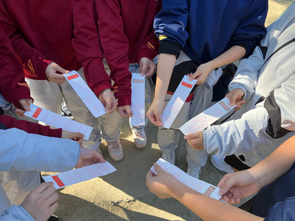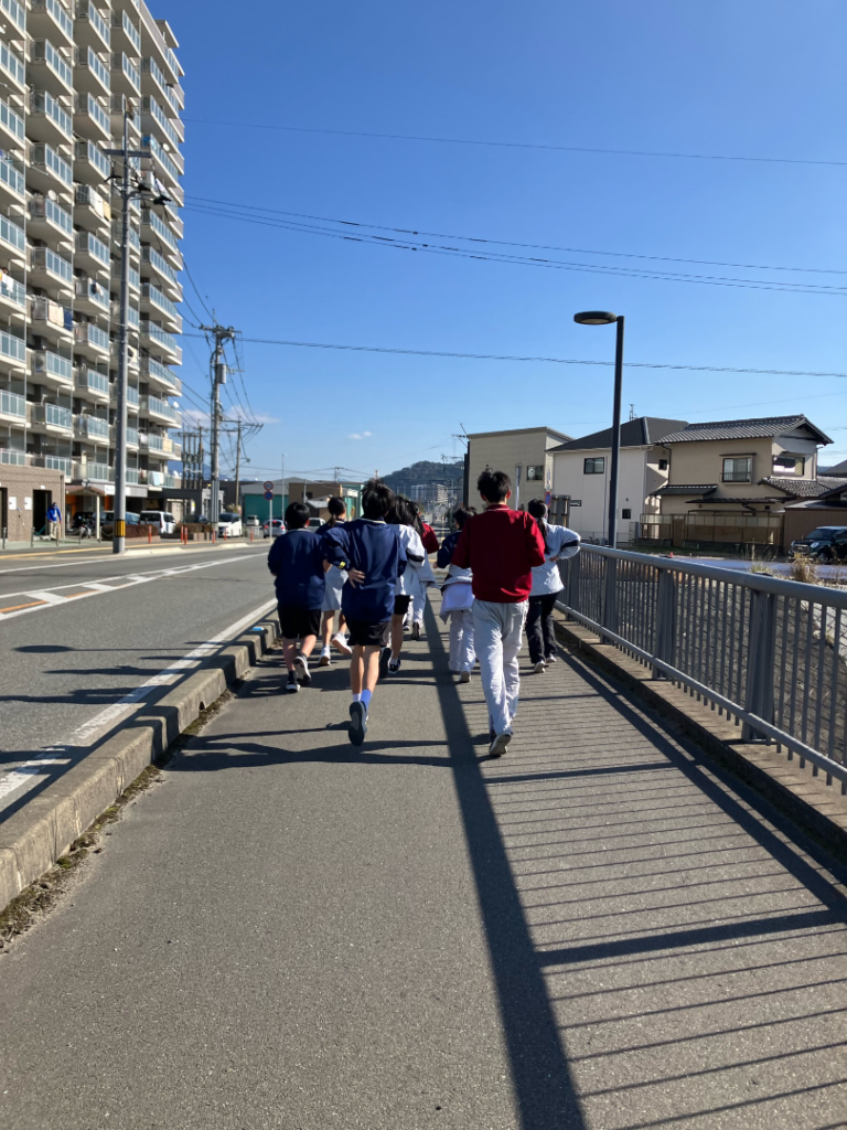例年、新年一発目の練習は、現人神社まで🏃→参拝→おみくじ→🏃→練習となっています。学校から神社までの道のりは1.4㎞。子供たちはいつもより息があがっていて、「膝が痛い」「疲れた」という声があり、年末年始の運動不足が顕著でした。