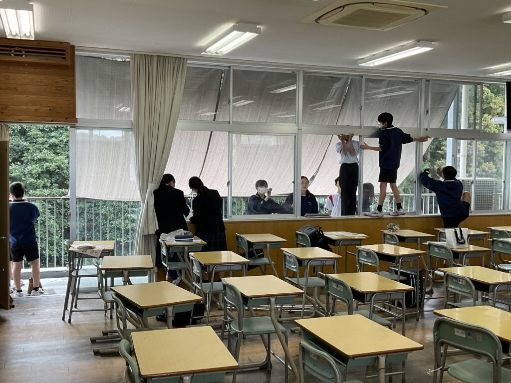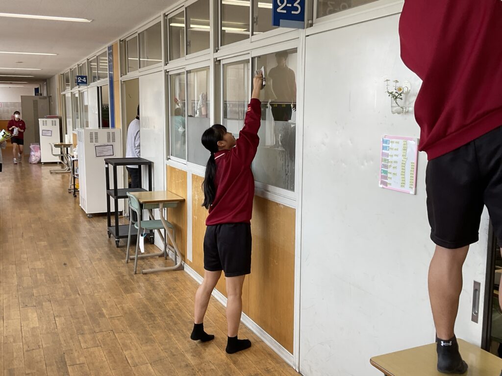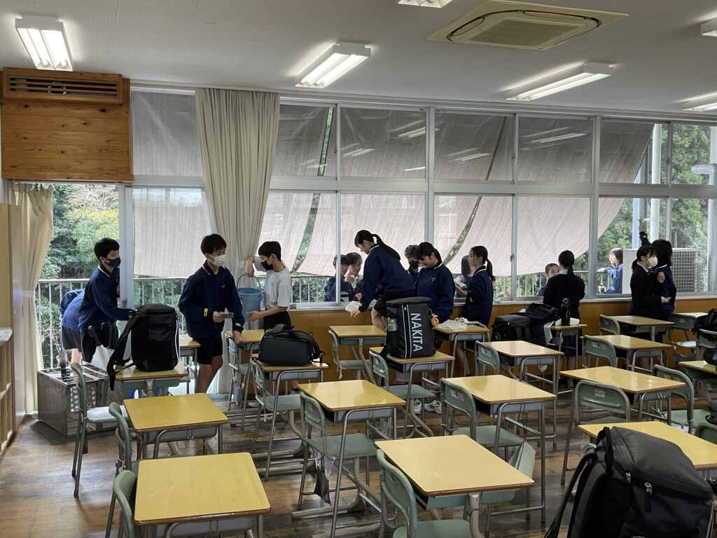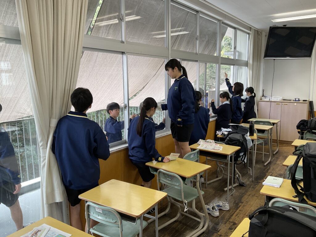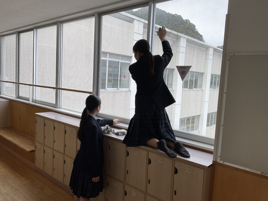 生徒たちはぞうきんやブラシを手に、教室の窓やベランダを丁寧に拭き上げていきました。普段の清掃時間ではなかなか手が届かない場所にも目を向け、協力し合いながら熱心に取り組む姿がとても印象的でした。活動後には、「クラスのために、清掃をすることができた」「感謝の気持ちを込めながら真剣に清掃をすることができた」「地域のボランティアは日程が合わず行けない時があるのでこういう機会があって良かった」「時間内を黙々とできて、隅々までできたのでとても掃除は大切だと気づけた」「今年最後のボランティアに参加でき、来年も参加できるように頑張りたい」といった達成感や主体的に行うことの大切さに迫る声が多く聞かれました。このようなボランティア活動を通して、身の回りの環境に気づき、自ら行動する力が育まれていることを実感します。今後も、生徒たちの思いやりと主体性を大切にしながら、今後も社会貢献力を高めていきたいと考えています。