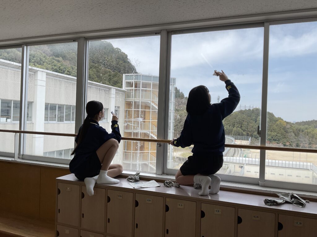 3月24日(火)に校内ボランティア活動として、教室の窓ふきやベランダの清掃に取り組みました。生徒の社会貢献力を高める機会の一つで、参加を希望する生徒が毎年長期休業前に校内の大掃除を行うものです。今回3年生は卒業しましたが、今回は150人以上の生徒が自主的に参加してくれており、今回も多くの生徒が参加してくれました。