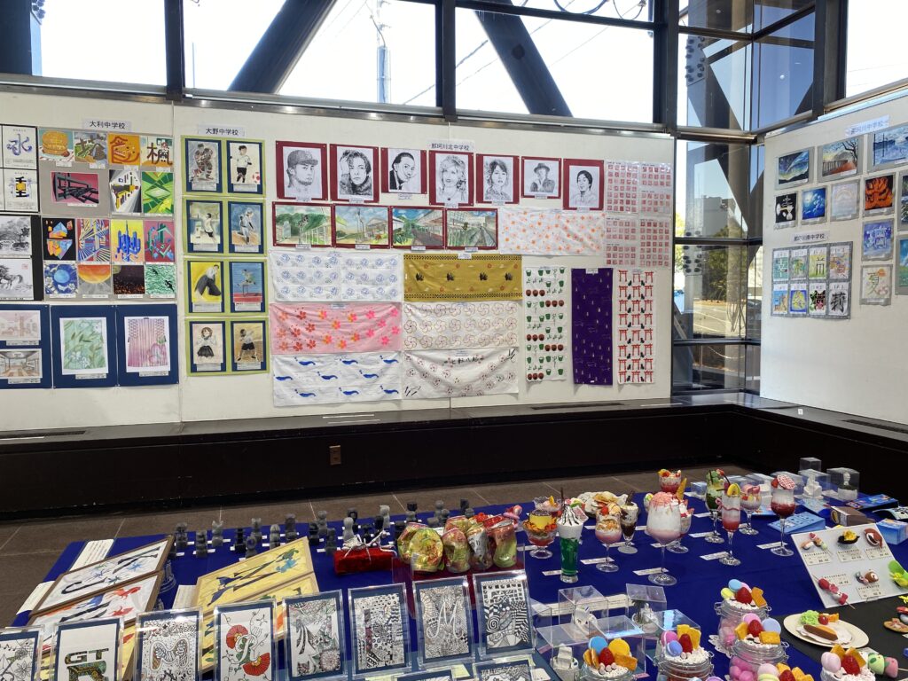 福岡県の中学生の優勝作品が一堂に会した展覧会です。那珂川北中の作品、一際輝きを放ち展示されています🤩