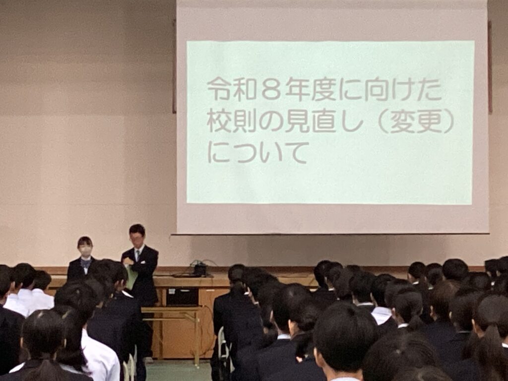 3月19日(木)、令和7年度の生徒総会が行われました。 学級審議で話し合った生徒会活動の方針や年間計画を踏まえ、執行部が議長団の進行のもと、次年度での生徒会の活動内容を報告しました。 総務と各委員会が目標や常時活動はもちろん、那珂川北中学校の伝統を守りつつ、新しい考えを取り入れた方針や活動を提案し、質疑応答を行うことで、生徒たちの「より良い学校にしよう」という、本気の姿を見ることができました。 今回、承認されたことを生徒・職員が一丸となって取り組み、より良い学校生活を目指してまいります。