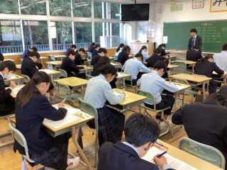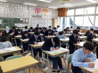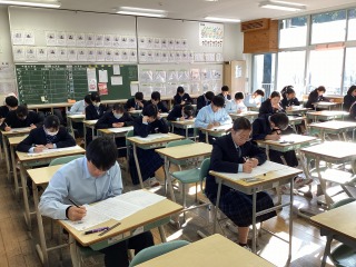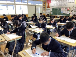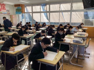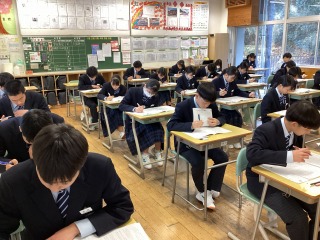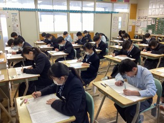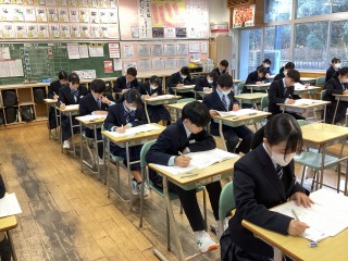 本日は全学年一斉に冬課題テストに臨みました。どの生徒も真剣な表情でテストに取り組んでいました。テストが終わった後には「もっと勉強しておけばよかった」や「勉強したところがテストに出ててよかった」など、様々な声が聞かれました。このテストで出た結果を一人一人がしっかりと受け止め、自分の学習状況を振り返り、今後の勉強に生かしてもらいたいと思います。