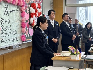 式後の学級活動では、担任から卒業生一人一人に卒業証書が手渡されました。また、仲間や先生、保護者への感謝の言葉が交わされ、笑顔あり、感動ありのあたたかなひとときとなりました。卒業生の皆さんが、本校での経験と仲間との絆を胸に、それぞれの道で大きく羽ばたいてくれることを願っています。