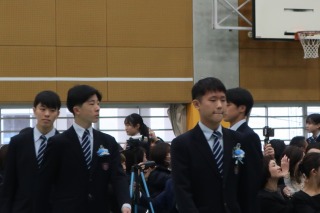 最後に、この式を迎えるにあたり準備・片付けをしてくれた1・2年生のみなさん、本当にありがとうございました。3年生からバトンを受け継ぎ、これからますます那珂川北中学校を発展させてもらいたいと思います。3年生のみなさん、保護者の皆さま、本日は誠におめでとうございます。