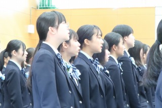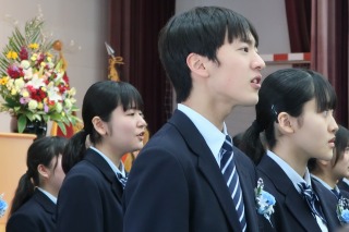 式は厳かな雰囲気の中で執り行われ、佐藤校長からは「皆さんは「未来の希望」です。ここにいる一人一人が、未来を、そして世界を変える力をもっています。世界のどこかに、あなたたちの力を必要としている人達が必ずいます。どうか、これからの人生においても、「自らの人生を主体的に運営する」という気概をもち続けてください。」という言葉が送られました。