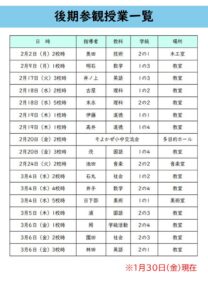 後期参観授業一覧