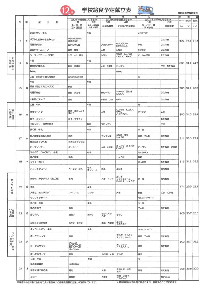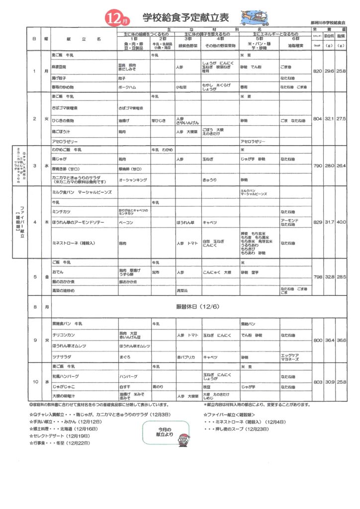 給食だより(12月号)