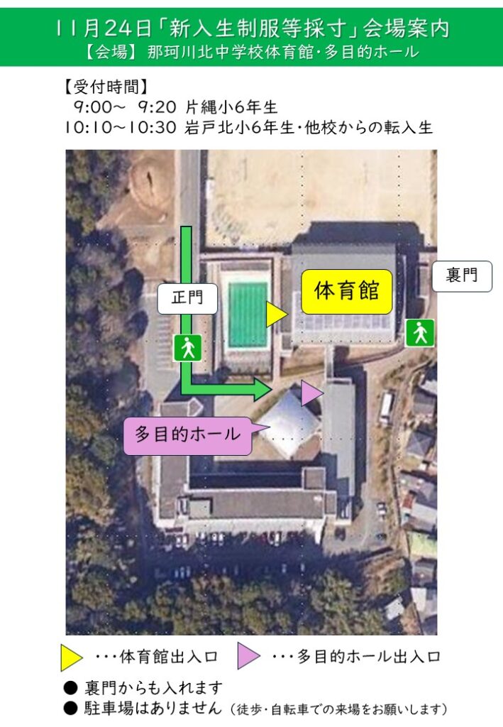 11月24日「新入生制服等採寸」会場案内