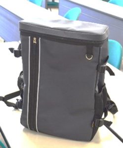 令和3年度新入生から、本校の通学バックを変更します。変更理由は、①近隣の通学バックより値段が高いこと、②生徒の荷物が多くて危険であること、などです。変更するバッグは、大容量で両手があくリュック式です(右写真、学校名が入ります)。